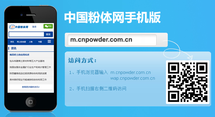 手機粉體網是面向移動專業用戶的新型資訊平臺。致力于建設粉體領域從業者、行業用戶工作及商務需求的移動終端網站,是隨時隨地獲取最新專業資訊的平臺,也是隨時隨地檢索專業信息的資料庫。可在首頁醒目位置植入圖片和文字廣告服務。